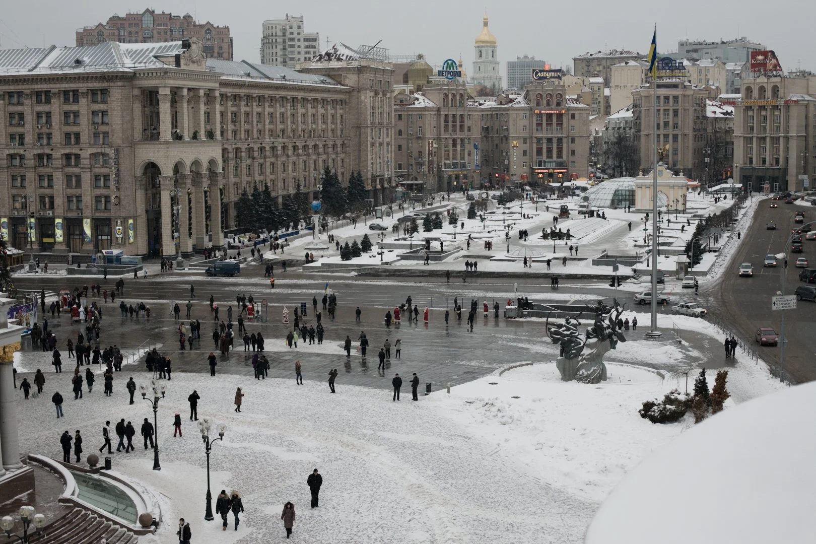 The photo shows Bessarabska market, right in the centre of Kyiv, at the junction of Khreschatyk, Taras Shevchenko, and Velyka Vasylkivska streets.